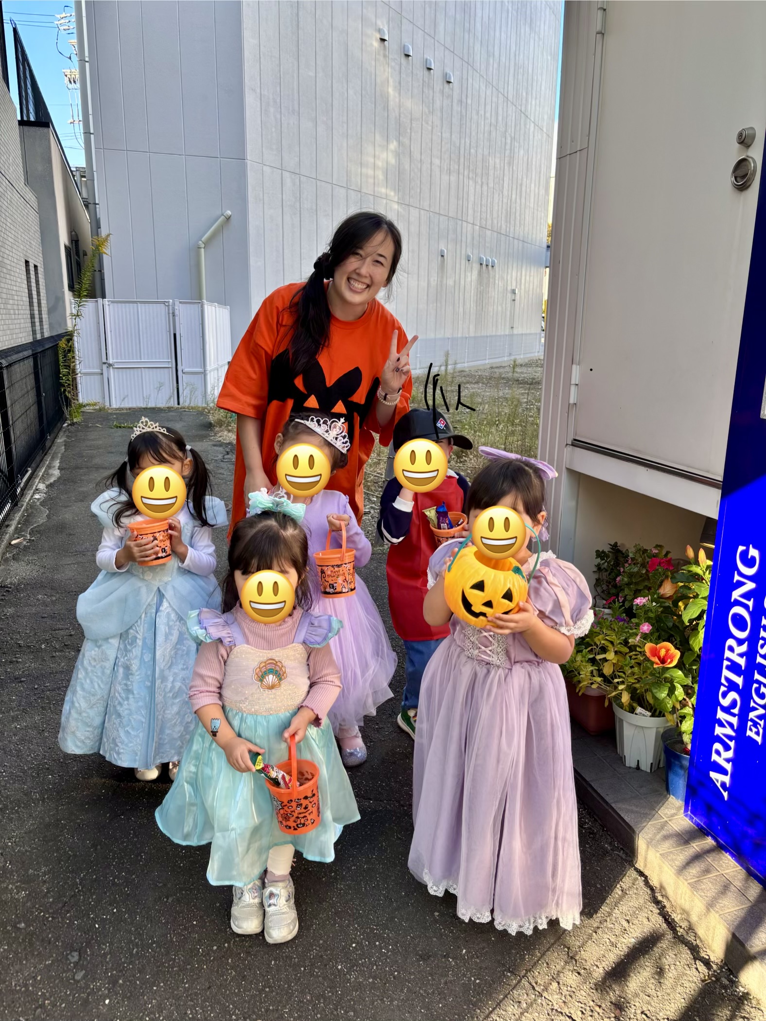 ハロウィンにちなんだ英単語を学んだり、ゲームで盛り上がったり、ご近所のお店を回って「トリック・オア・トリート」も体験しました🍬