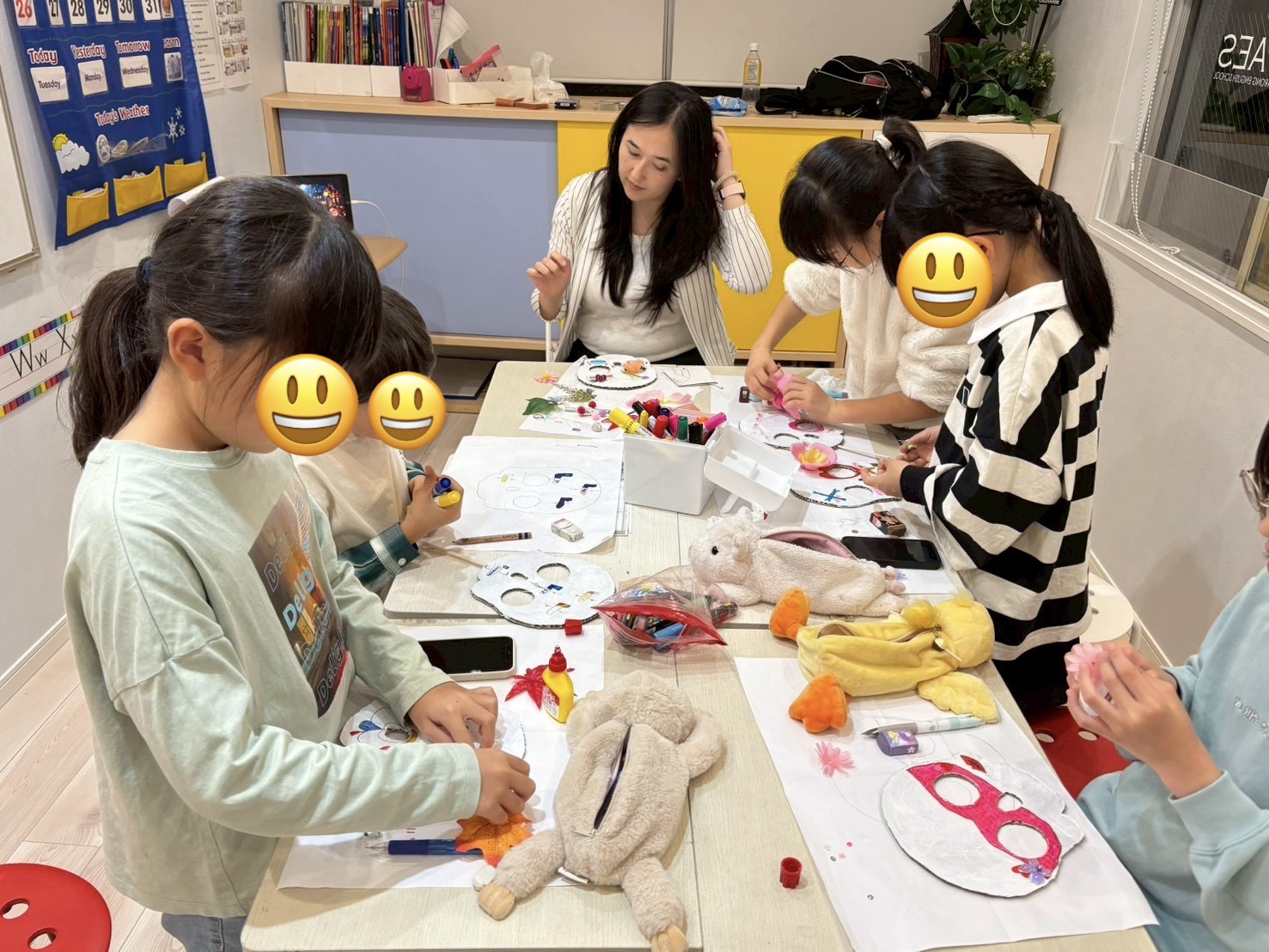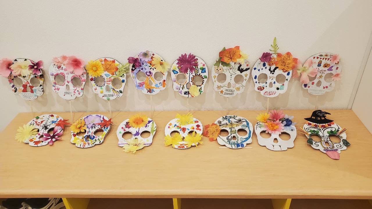 毎年恒例のクラフト制作。今年は「メキシコの死者の日」をテーマに、骸骨マスクをデコレーションしました✨